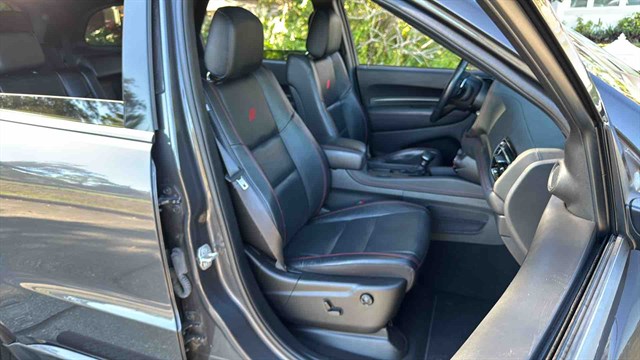 -The GT Premium Package is highlighted by a Nine-speaker Alpine audio system, Lane keeping assistance (steers the Durango back into its lane if it begins to drift over the lane marker), Wireless phone charger, Upgraded cabin trim, 10.1-inch touchscreen, Navigation system, Leather upholstery, Sunroof, Power front seats with driver's seat memory functions, Ventilated/heated front seats, Forward collision warning with automatic braking (warns you of an impending collision and applies the brakes in certain scenarios), Adaptive cruise control (adjusts speed to maintain a constant distance between the vehicle and the car in front), Black grille/window trim, 20-inch wheels, Third-row seat for seven-passenger seating, Power liftgate, LED headlights, Heated steering wheel, Apple CarPlay and Android Auto smartphone integration, Blind-spot monitor with rear cross-traffic alert (warns you if a vehicle is in your blind spot during a lane change or while reversing)