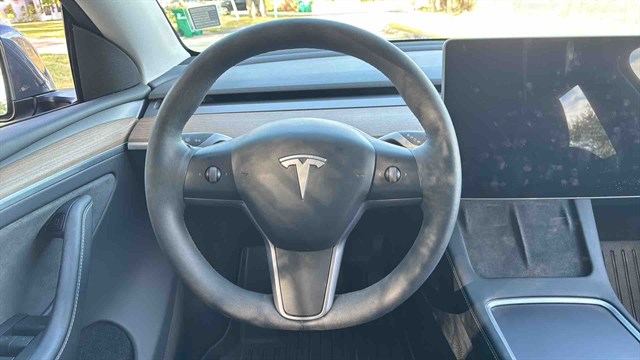 320 miles of range, Tesla-quoted 0-60 mph time of 6.5 seconds, 19-inch wheels, Panoramic glass roof, Dual-zone automatic climate control, Synthetic leather upholstery, Power-adjustable front seats, Heated front and rear seats,15-inch central touchscreen, Streaming services (navigation and entertainment; subscription required), Wireless device charger, 14-speaker sound system, Adaptive cruise control (maintains a driver-set distance between the Model Y and the car in front), Forward collision mitigation (warns you of an impending collision and applies the brakes in certain scenarios), and Lane keeping assistance (steers the Model Y back into its lane if it begins to drift over the lane marker).