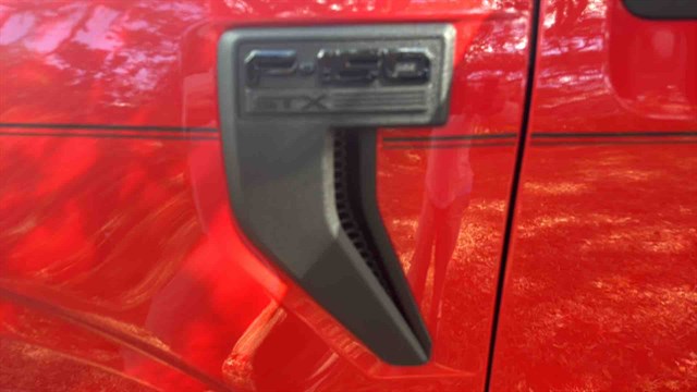 -The STX Appearance Package adds 20-inch machined aluminum wheels with dark gray pockets, body-color bumpers, a black mesh grille, fog lamps, and unique box side decals.