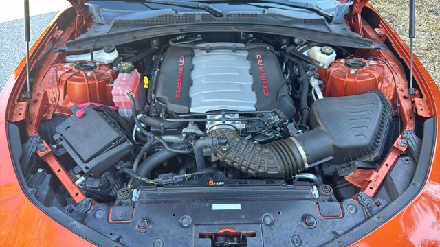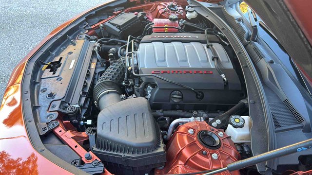 The 1LT Package is highlighted by a 6.2-liter V8 engine (455 hp, 455 lb-ft), an external engine oil cooler, Brembo front brakes, Performance-tuned suspension, Keyless entry/ ignition, an 8-way power-adjustable driver's seat, a 6-way power-adjustable passenger's seat, a drive mode selector, Single-zone automatic climate control, a leather steering wheel, an 8-inch touchscreen, Wireless Apple CarPlay/Android Auto integration, a six-speaker audio system, 4G LTE Wi-Fi hotspot, and Satellite Radio.