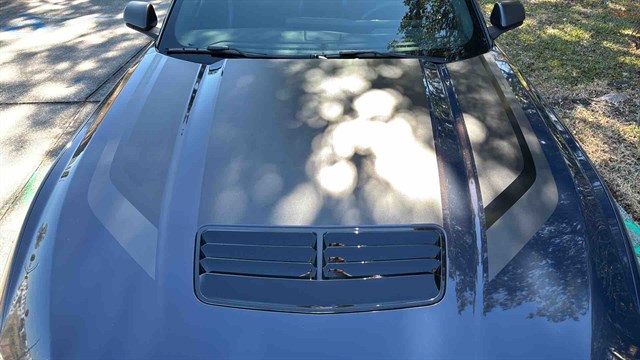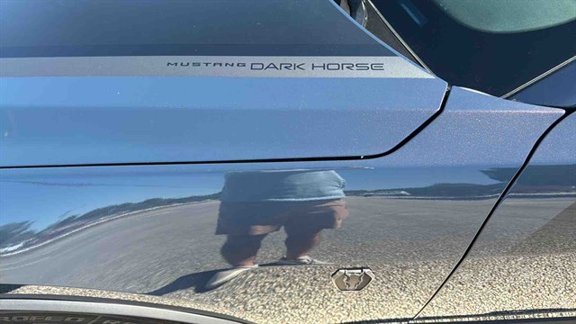 -The Dark Horse Appearance Package adds Blue interior accents, Black painted roof, Blue brake calipers, and a Special hood graphic.