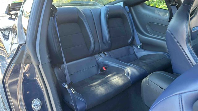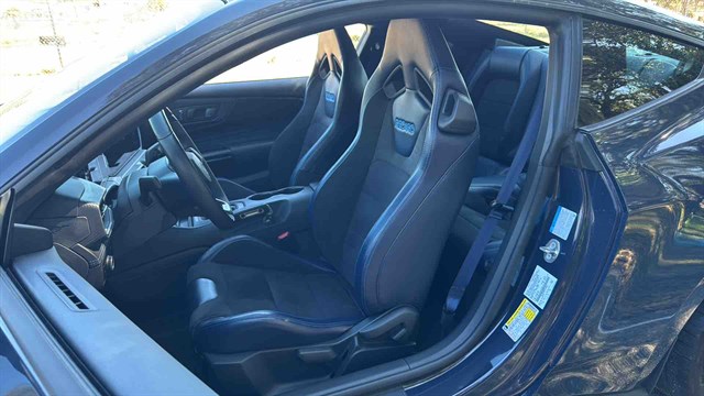 -This Dark Horse also has the Recaro Seats, Tech Package, and the sharp Blue Ember Metallic Paint.