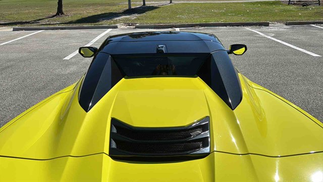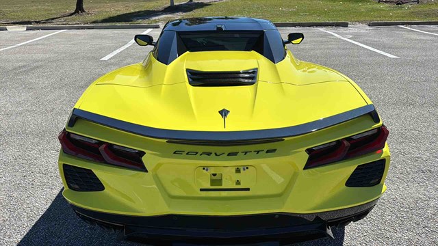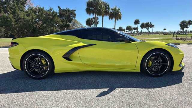 -This Vette also has Performance Exhaust, Carbon Flashed Painted Nacelles/Side View Mirrors, Bright Yellow Brake Calipers, Low Rear Spoiler/ Front Splitter, Yellow Seatbelts, Carbon Flashed Painted Alloy Wheels with Machine Edge, and Black Exhaust Tips.