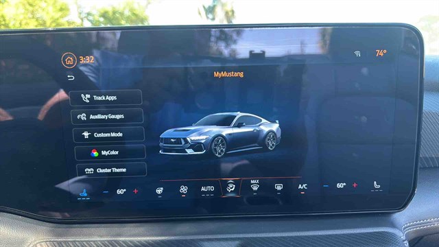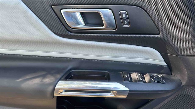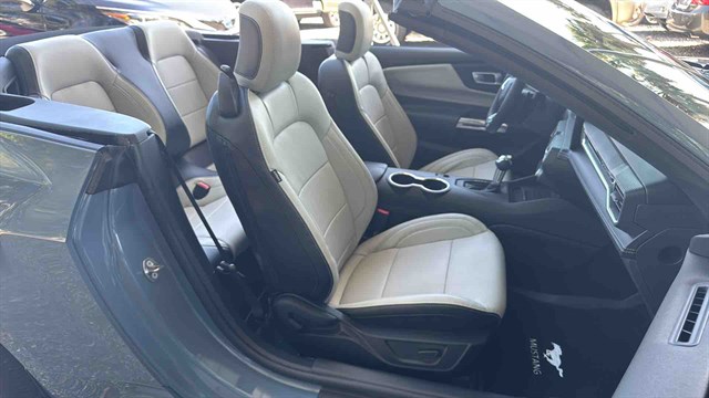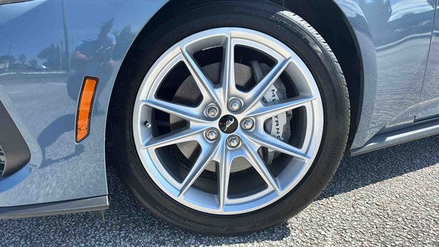 The Premium Package is highlighted by Larger brakes, 18-inch wheels, Hood vent, Special front and rear styling, Dual exhaust with quad tips, Auto-dimming rearview mirror, Dual-zone climate control, Synthetic leather upholstery, Multi-color ambient lighting, Auto-dimming rearview mirror, Heated steering wheel, Combined instrument and infotainment displays, Leather-wrapped steering wheel, Power-adjustable front seats with heating and ventilation, Remote start, Wireless smartphone charging pad, LED headlights, Keyless entry, Leather-wrapped gear shifter, Digital instrument panel, 13.2-inch infotainment touchscreen, Apple CarPlay/ Android Auto smartphone compatibility, Wi-Fi hotspot, Blind-spot warning with rear cross-traffic warning (alerts you if a vehicle is in your blind spot during a lane change or while in reverse), Forward collision warning with automatic braking (warns you of an impending collision and applies the brakes in certain scenarios), Lane keeping assistance (steers the Mustang back into its lane if it begins to drift over the lane marker), and Rear parking sensors (alert you to obstacles that may not be visible behind the vehicle when parking.