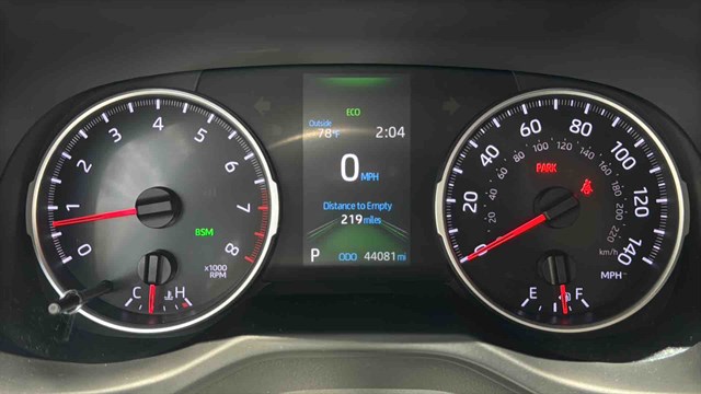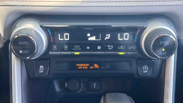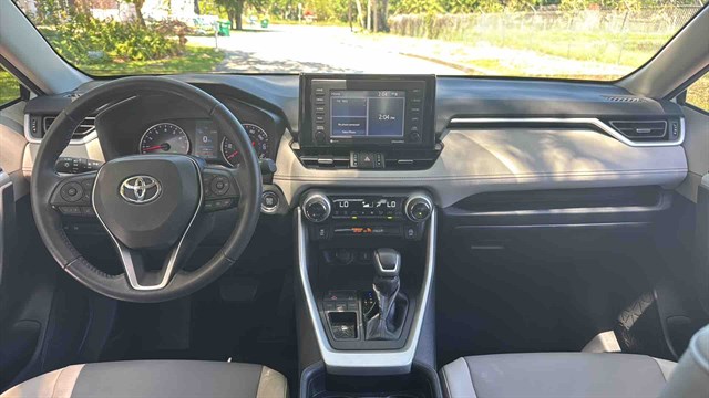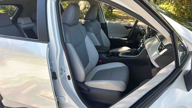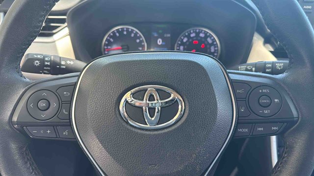 Larger wheels, Slightly raised suspension, Sunroof, Power liftgate, Simulated leather upholstery (Toyota's SofTex), Soft-touch dashboard materials, Keyless entry/ ignition, Power-adjustable driver's seat, Blind-spot monitor (alerts you if a vehicle in the next lane over is in your blind spot), Dual-zone automatic climate control, Additional USB charging ports, LED headlights, 7-inch touchscreen interface, Apple CarPlay/Android Auto smartphone connectivity, Six-speaker sound system, Forward collision mitigation (warns you of an impending collision and applies the brakes in certain scenarios), Adaptive cruise control (maintains a driver-set distance between the RAV4 and the car in front), Lane keeping system (makes minor steering corrections to help keep the vehicle centered in its lane), Automatic high beams, and Traffic sign reader.